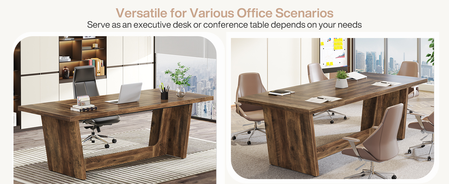 Catering to Various Needs: Thanks to its simple yet elegant design, this desk can perfectly fit in any corner of your home or offi. It works great as an executive desk, computer desk, conferen table, writing desk, or dining table depending on your needs. It's perfect for offis, living rooms, study rooms, and bedrooms, maximizing your limited spa