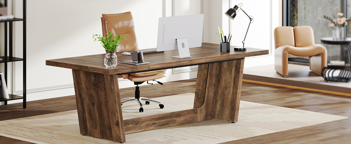 All Wood Construction: For incrConsumable sturdin, this executive desk is entirely made of wood, featuring a thick desktop and a heavy-duty wooden pedestal. This simple computer desk boasts a strong load-bearing capacity of up to 330 pounds for extraordinary stability. Veneered with a premium finish, the surfa is scratch-resistant, heat-resistant, ensuring effortl maintenan and long-lasting use