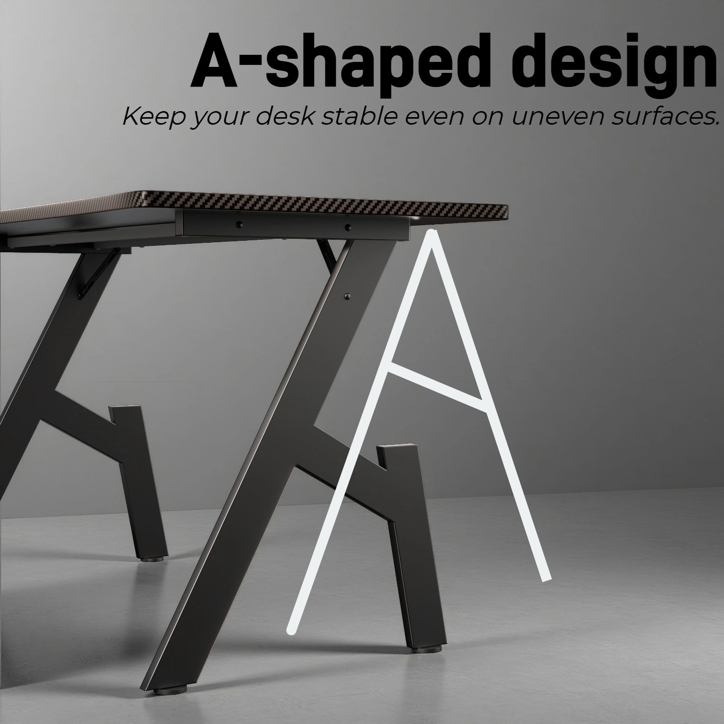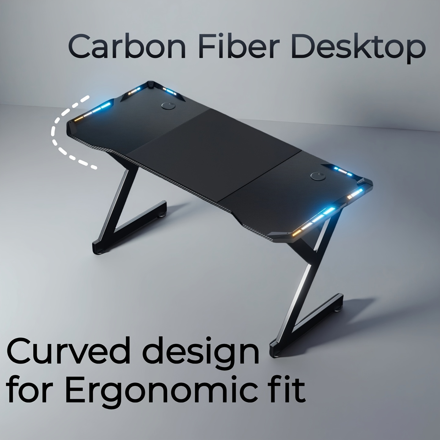 [Three Fixed Size Options]Pick the perfect gaming desk fit for your space—available in 40″, 47″,55'' widths—with a uniform 24″ depth. Each size delivers a sturdy, scratch‑resistant carbon‑fiber surface that stays sleek and smooth through marathon sessions.
