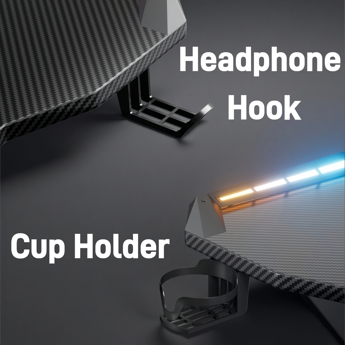 [Built‑In Accessory Mounts]Stay organized with the included detachable cup holder, reinforced headphone hook, and dual cable grommets. Keep drinks secure, headphones close at hand, and cables neatly routed, so nothing pulls you out of the action.