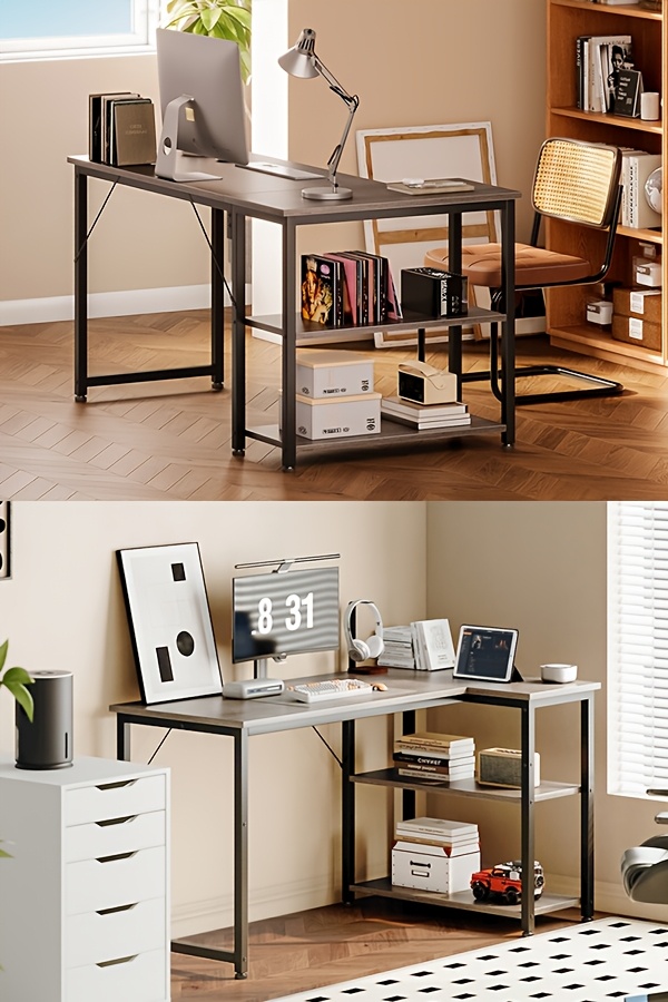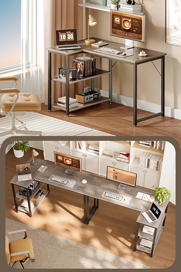 L-Shaped Reversible Corner Desk with Storage Compartment | Space-Saving