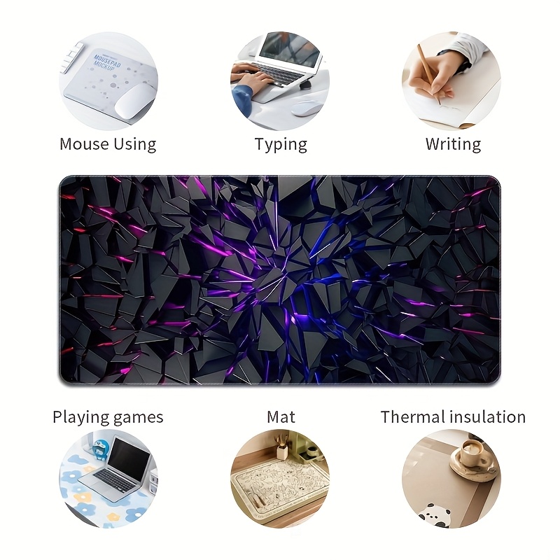 Extra-Large Futuristic Black Mouse Pad with Vibrant Neon Lines