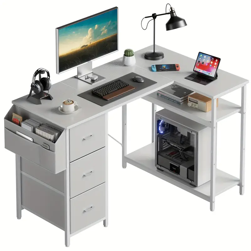 In the e - sports scene, it performs even better. The spacious desktop can hold devices such as monitors, keyboards and game controllers, and the side storage can organize game accessories neatly, allowing you to enjoy the fun of games immersively while keeping the space tidy and orderly.