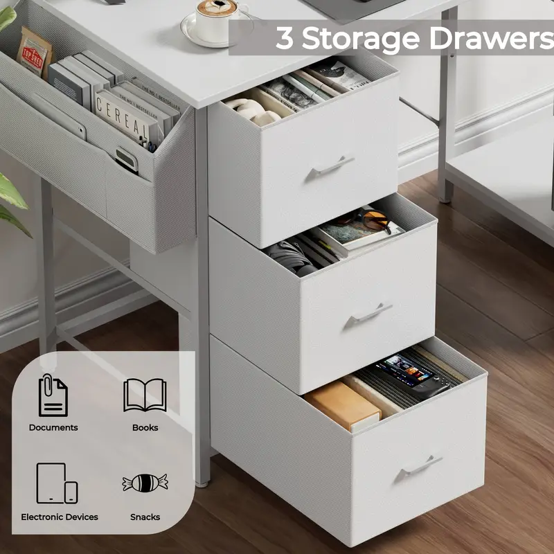 There are 3 storage drawers, where documents, books, snacks, etc. can be stored in categories to keep the desktop tidy.