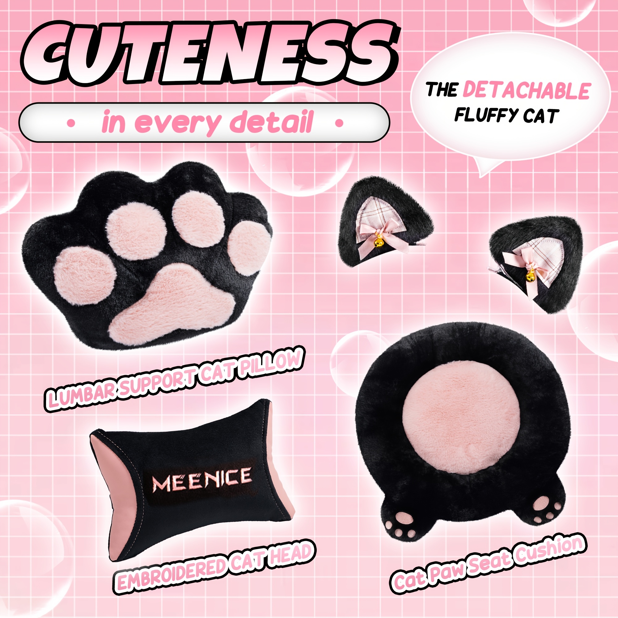 Pink Gaming Chair With Cat Ears - Heavy-Duty