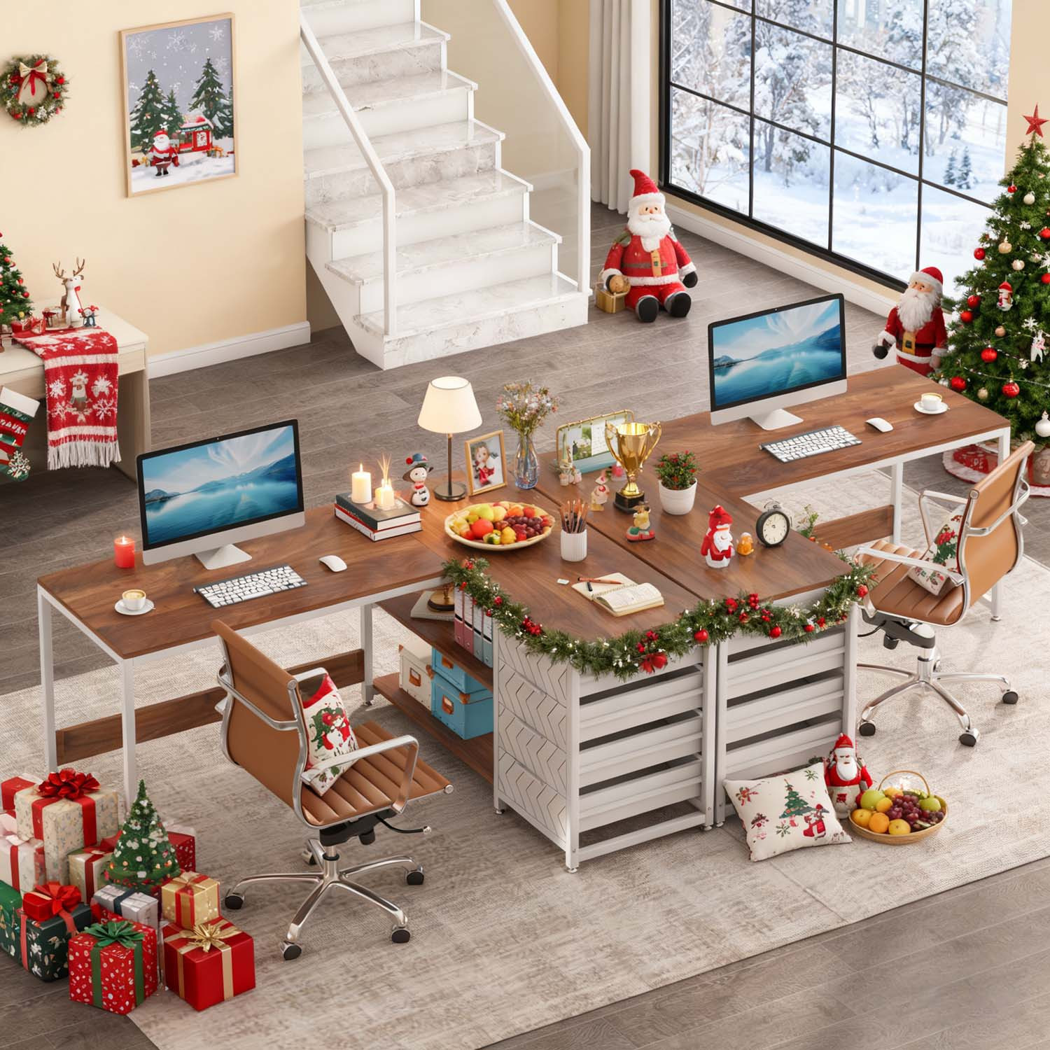 Versatile Workstation: Overflowing with a rustic appeal, featuring walnut surfaces and a light-colored frame, it fits seamlessly into any environment. Ideal for use as a computer desk, home office workstation, study area, or executive desk to meet diverse professional requirements.